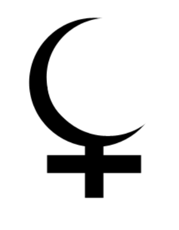 Se representa con una media luna con una cruz en su base.
