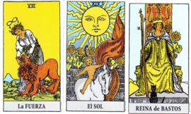 En la carta de la Fuerza observamos un León, que representaría esta energía, pasión, vitalidad y fuerza que tiene este signo. La carta del Sol que representaría a su regente le aporta ese brillo y ese carisma que le hace único.