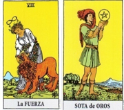 La doncella que sale en la carta de la Fuerza posee la energía de Virgo, tiene paciencia, mano izquierda y una inteligencia práctica y enfocada en lo práctico que le permite encontrar la manera de poder gestionar sus instintos y cualquier dificultad que se le presente.