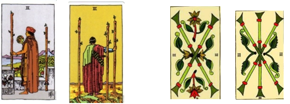 TAROT. EL 2 Y EL 3 DE BASTOS