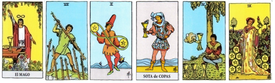 Arcanos: 7 de bastos, 7 de oros 9 de copas