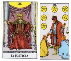 La Justicia y la carta del 6 de oros de los arcanos menores del Tarot, son dos cartas que tienen algunos parecidos pero que no son iguales. Esto es el tema sobre el que vamos a profundizar a continuación.