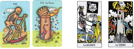 La Muerte nos habla de un cambio orgánico del final de un ciclo, todo acaba muriendo. La Torre nos habla de algo que no podemos ver venir.
