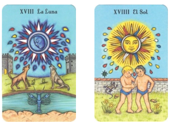 Pongamos un ejemplo: El sol y la Luna de los arcanos mayores.
