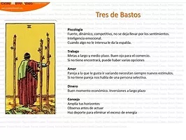 En este documento veras, tal cual, como explicamos cada carta. En concreto con este Pdf vas a estudiar el 3 de Bastos, primero desde la parte de la simbología y después te explicaremos que representa esta carta en distintos aspectos como el trabajo, el amor , la salud, el consejo, etc. de manera que puedas estudiarla de forma ordenada, con un vocabulario claro y una estructura que facilita su integración.