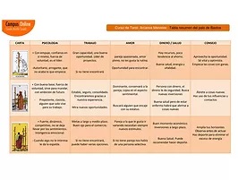 Al finalizar cada palo encontrarás estas fichas resumen, en las que en apenas 4 hojas ,encontraras un resumen de cada carta que acabas de estudiar.