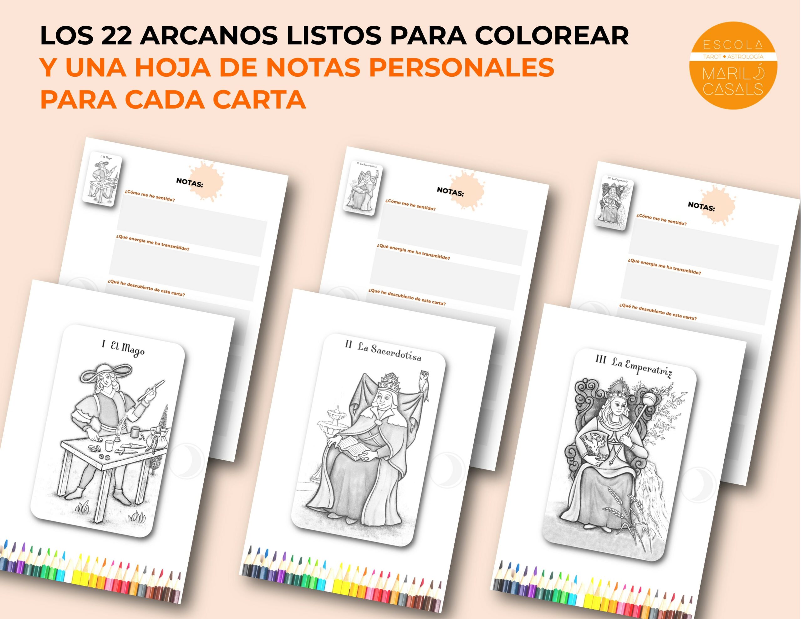 • 22 láminas con los 22 arcanos mayores del Tarot de las Sensaciones para colorear.