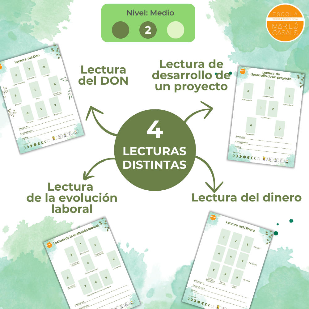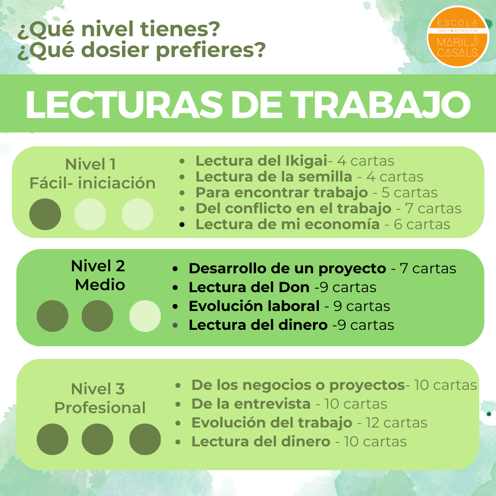 4 plantillas de lecturas de Trabajo distintas, explicadas paso a paso, para personas que se inician en el Tarot (Nivel 1: Medio)