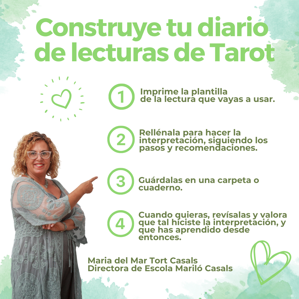 • Hoja de valoración personal, para anotar como me he sentido con le lectura, cómo he conectado con el consultante, qué aspectos puedo mejorar y cómo cierro la lectura.