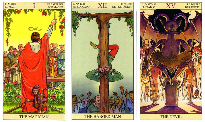 - Los 22 Arcanos mayores de 3 tarots distintos: