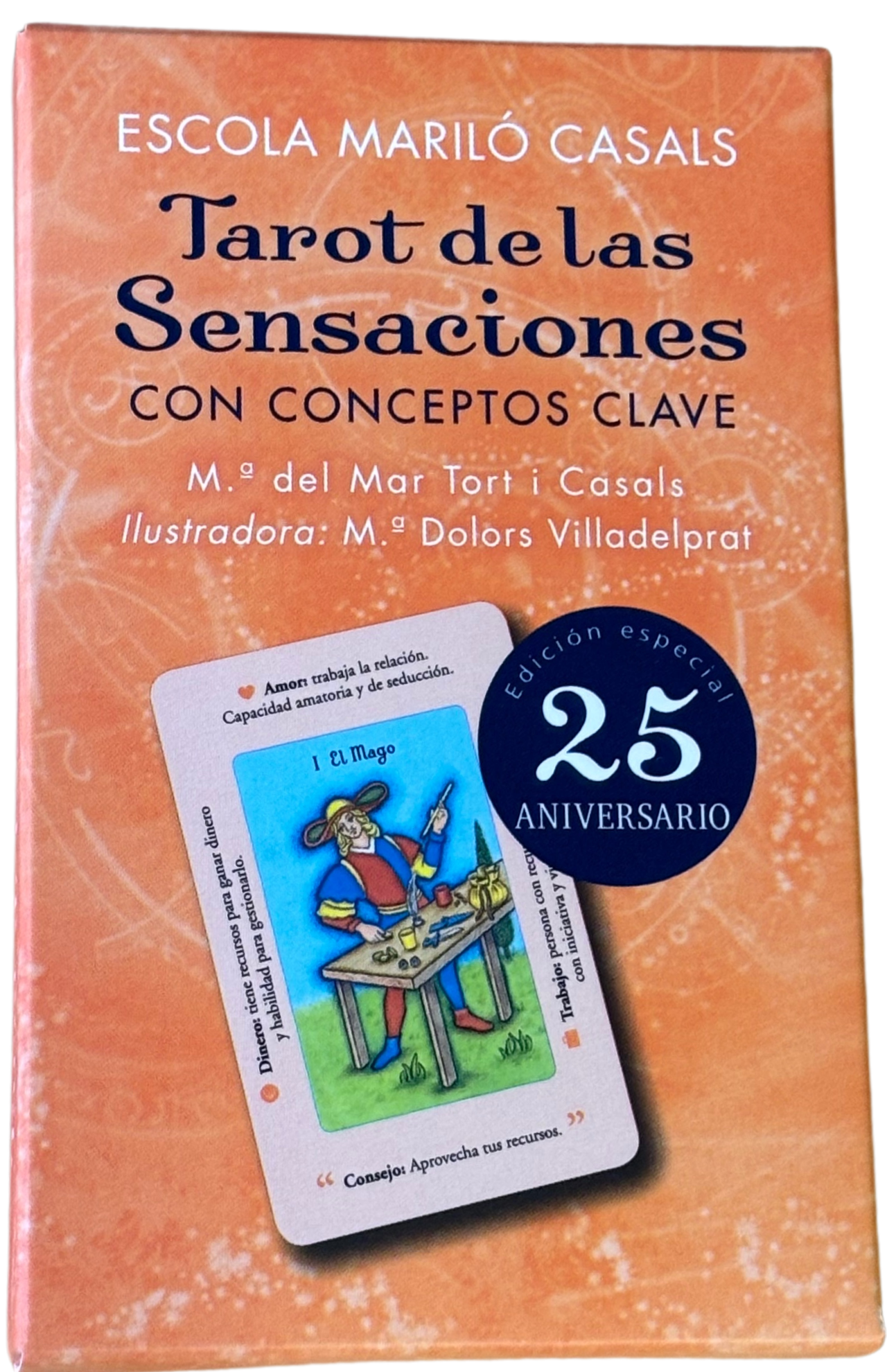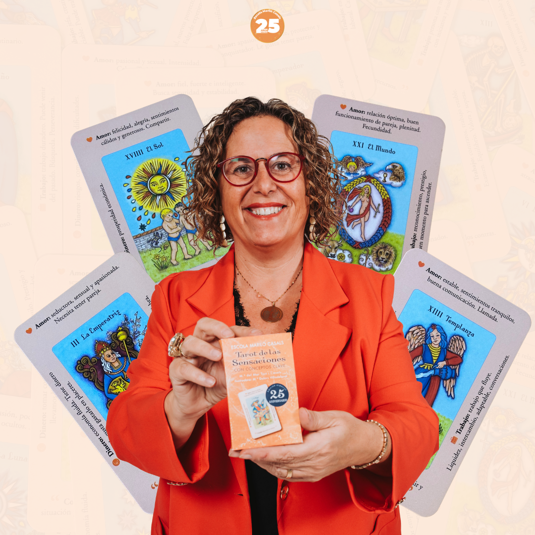 En esta baraja especial 25 aniversario de la Escola Mariló Casals, su autora Mª del Mar Tort Casals ha pensado en hacerte mucho mas fácil el proceso de aprender a interpretar tus propias lecturas, añadiendo pequeños conceptos en los márgenes que te ayudarán a realizar tus interpretaciones.