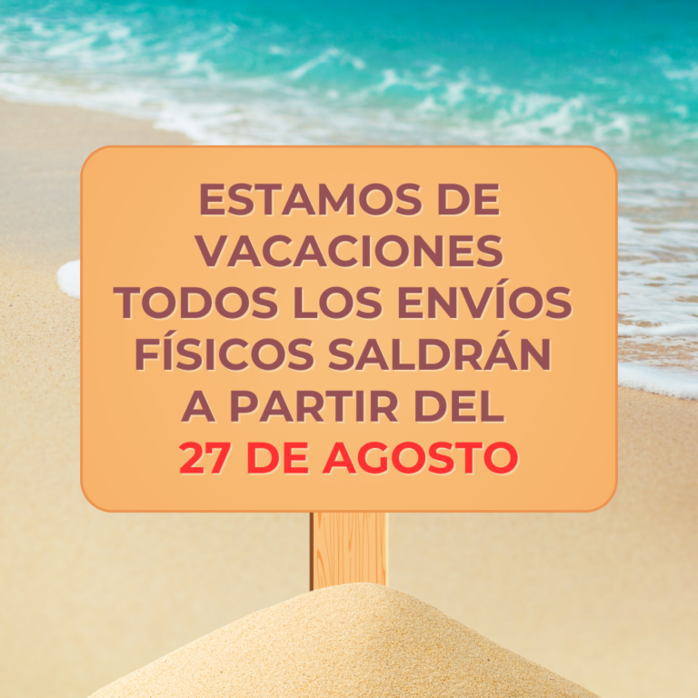- Estamos de vacaciones, todos los envíos con productos físicos se gestionarán a partir del 27 de agosto.